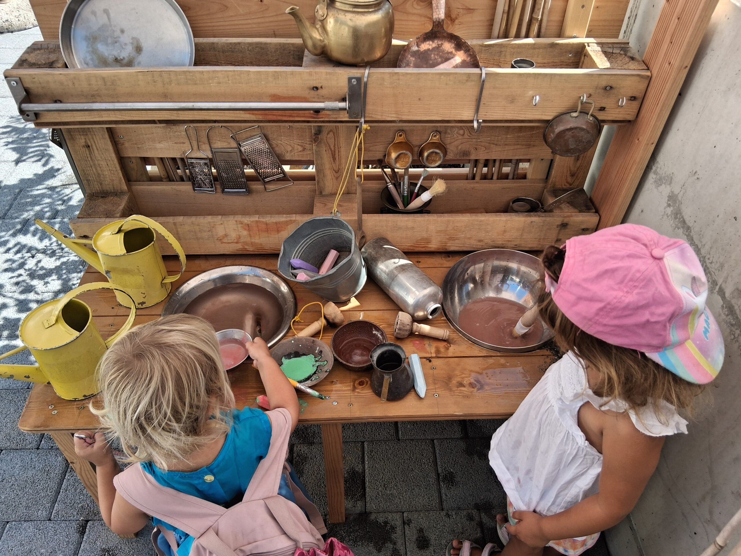 Unsere warm gestalteten Räumlichkeiten und unser Spielmaterial bieten den Kindern unerschöpfliche Möglichkeiten. Das Spielmaterial ist natürlich und hochwertig, spricht alle Sinne an und bietet verschiedenste Zugänge. So eröffnen wir den Kindern viele Möglichkeiten, um zu experimentieren, in andere Rollen zu schlüpfen, Kreativität zu entwickeln und neu erworbene Fähigkeiten immer wieder zu üben. Damit sie ganz in ihr Tun eintauchen können, brauchen die Kinder eine überschaubare Tagesstruktur und Erwachsene, die sie in ihren Vorhaben mit Wohlwollen, einer gewissen Zurückhaltung und mit klaren Grenzen unterstützen. Wir haben grosses Zutrauen in die Kinder und halten uns erzieherisch im Hintergrund. Wenn nötig, geben wir Orientierung und Halt. So können die Kinder Selbstwirksamkeit erfahren und ihre Kreativität ausleben.